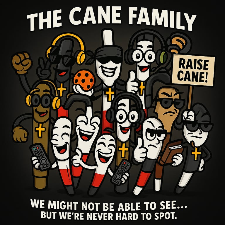 The Cane Family was the first born creation of Blind Sight Tees — the design that started it all.